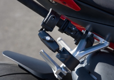 摩托車第三視角拍攝時,請搭配 Osmo 1 公尺高強度碳纖維隱形自拍桿*使用。