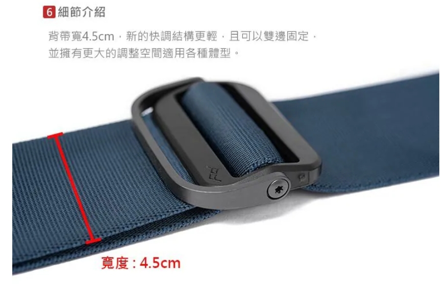 背帶寬45mm,快調結構更輕,可以雙向固定,更耐用的止滑設計,讓你流暢的調整操作,並擁有更大的調整空間適用各種體型。(附收納袋及六角工具組)